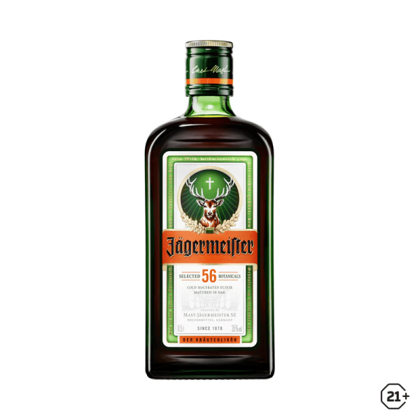 Jägermeister is a world-famous German herbal liqueur with a rich history dating back to 1934. Made from a secret blend of 56 natural botanicals—herbs, roots, fruits, and spices—it is carefully matured in oak barrels to achieve its unique balance of sweetness, bitterness, and herbal complexity. Recognized for its dark color and bold flavor, Jägermeister has become a global favorite for parties, celebrations, and creative cocktails. Traditionally served as an ice-cold shot at -18°C, it also mixes beautifully with energy drinks or citrus-based mixers.
